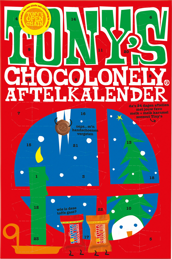 Please give a warm welcome to our tasty countdown calendar. Enjoy 2 different flavours of Fairtrade milk and milk caramel sea salt wrapped up in Christmas colours, ready for sharing. Or hang them on your Christmas tree! This time, it's all about two irresistible flavours— Fairtrade milk chocolate and dreamy milk caramel sea salt. Perfect for sharing (if you can..) or hanging on your tree for some sweet, holiday décor. Who's ready to unwrap a lil bit of joy every day? (usssssss!) Calendar size: 382 x 254 x 29 mm