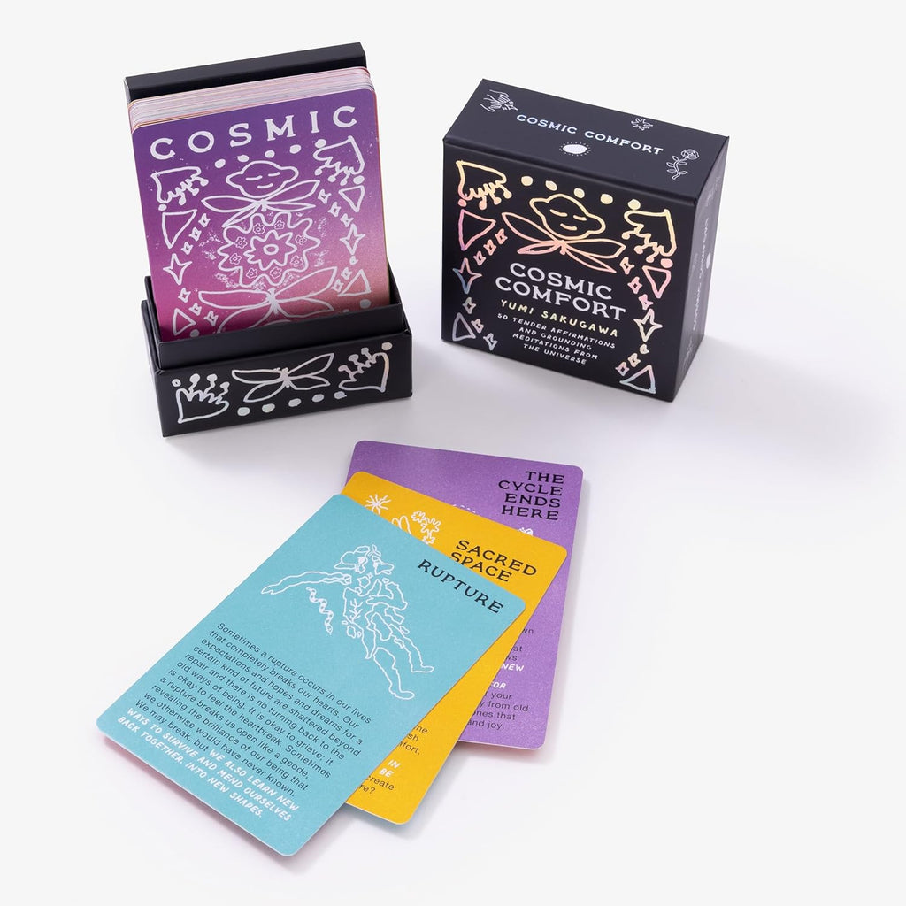 Cosmic Comfort offers permission from the universe to embrace your radiance, your weirdness, your most uncomfortable emotions, and your sacred connection to all beings on Earth. The calming meditations in this deck ask you to consider what nourishes you today—in this very moment.