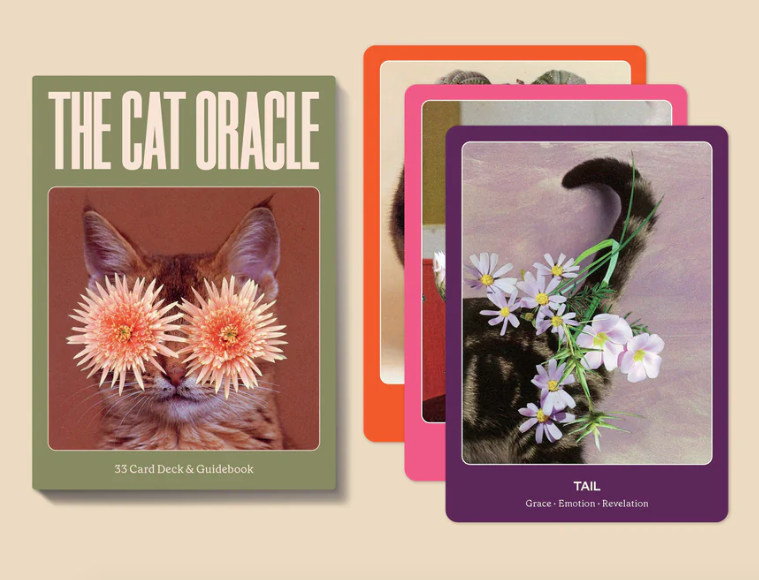The Cat Oracle is a guide to seeing in the dark and discovering your wildest nature. These 33 cards (plus a guidebook for their interpretation) are tools for exploring cycles of zooming chaos and cozy catnaps, learning when to pounce, and finding the internal gyroscope that guides you to always land on your feet. Cats choose us. Which one will choose you?
