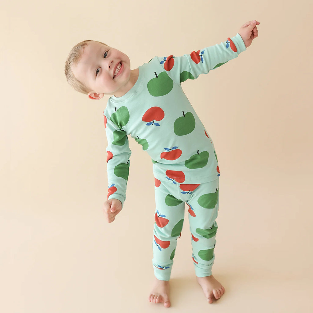 Made of incredibly soft 100% GOTS certified organic cotton. These cozy pajamas are long sleeved and meant to be snug fitting, because no flame retardants or chemicals are used in our clothing.  If your little one is between sizes, buy up for the best fit.