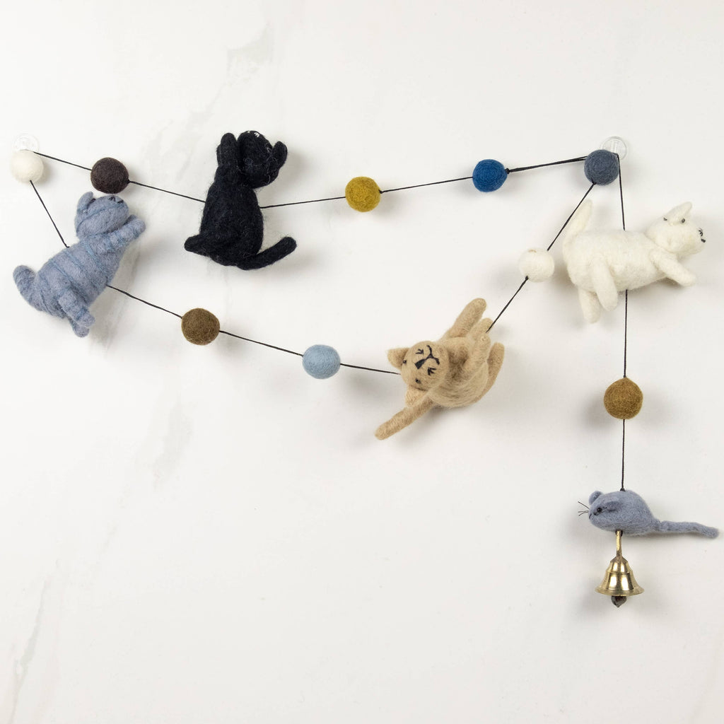 These whimsical felt garlands are handmade with care in Kathmandu, Nepal. Add some cuteness to any room! The Winding Road works with a small family-owned workshop that follows fair trade practices and strives to improve the standard of living for their artisans. They take part of their profit to pay full school tuition for their felt workers' children in Nepal. Made from 100% organic wool, this is one solid piece of wool that's been hand rolled into felt!