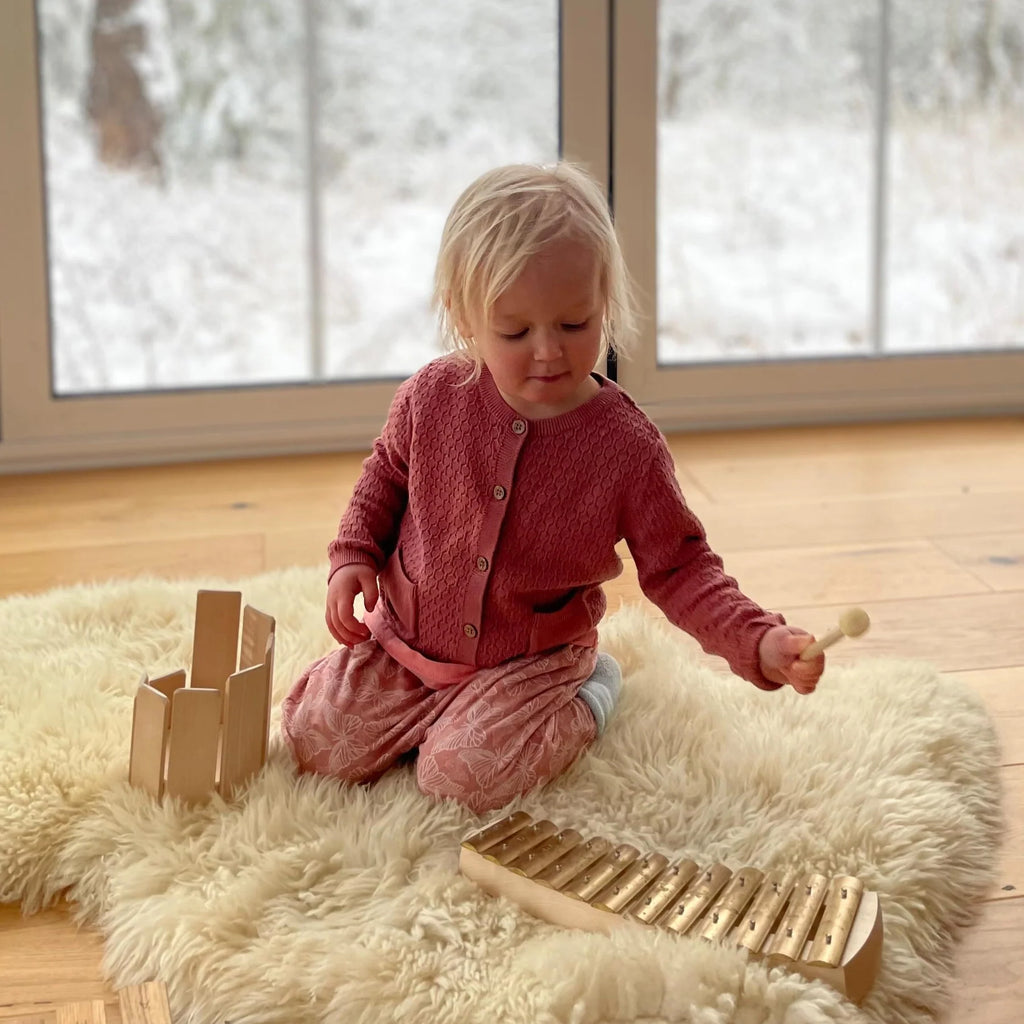 Auris Glockenspiels are finely tuned and have clear, pure overtones. Their clear, spherical tones create a lovely sound experience. The tone bars consist of a brass alloy coated with beeswax to enhance and preserve their soft, natural shine. The resonating body is made of varnished maple, and is polished with beeswax.