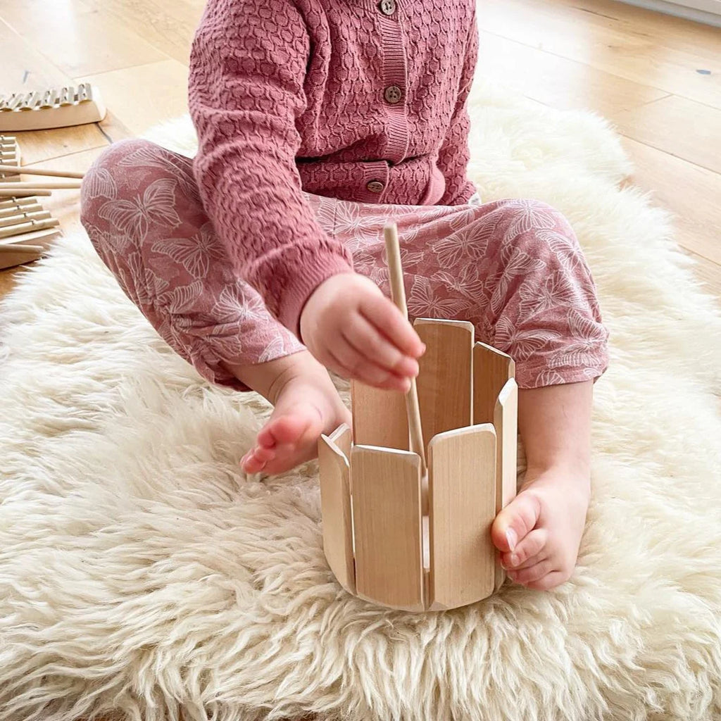 With this instrument you can create harmonious melodies by simply moving your hand in circular movements with the mallet. This movement stimulates hand-ear coordination in a natural way.