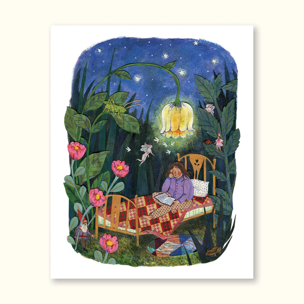 Envelop yourself in a serene summer night with the Sanctuary Print. With peaceful vibes and beautiful blooms, be inspired to get lost in a book and find yourself in nature's safe haven!
