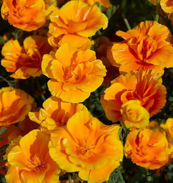 Lady Marmalade Californian poppies grow to 35cm (14") tall on upright stems, and bloom July through September from a direct spring sowing. Golden yellow with bright orange centres.