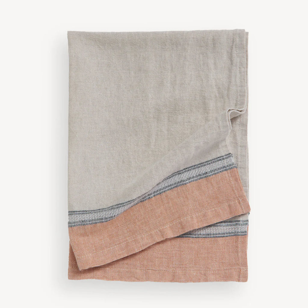 Mandarin and sage hues bring warmth and add a little luxury with a gorgeous linen/cotton blend hand towel.